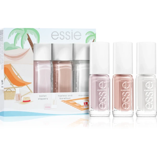 A gorgeous manicure worthy of a visit to the beauty salon? The essie mini triopack nail polish, “To the Beach, Please!”, lets you create it in the comfort of your own home. It coats your nails with a continuous layer of intense, long-lasting color with a glossy finish, giving them a polished and perfectly manicured look. This way, you can easily highlight your nails or perhaps even accentuate the style of your outfit. So, which color will shine on your nails?