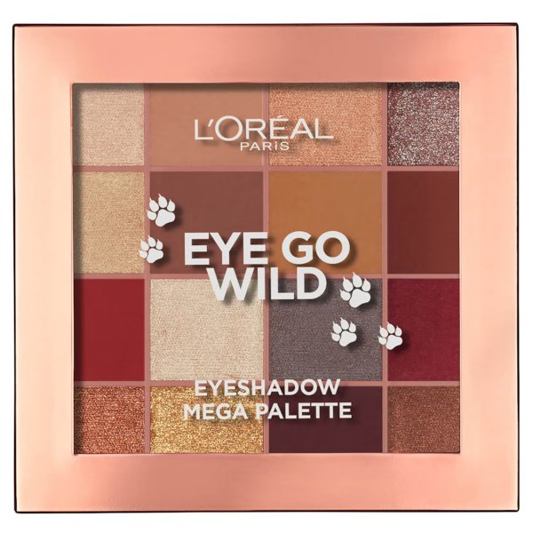 Create a sultry feline eye look with the L’Oréal Paris Eye Go Wild Eyeshadow Palette. Embrace the spirit of the wild with 16 sumptuous caramel tones. Arriving in a range of finishes, the palette offers versatility for both day and night time looks. Create effortless depth and dimension with creamy matte shades, luxuriously reflective shimmers and twinkling glitters. The highly pigmented shadows blend effortlessly, creating a professional diffused finish that lasts all day long. This contemporary neutral palette will quickly become your new go-to. Delve into shimmering sandy tones, fierce reds and luxurious cinnamon tones to create a custom smokey eye look. Delivering intense colour payoff with long-wear staying power, this palette is sure to bring out your wild side. Housed in a metallic bronzed compact.