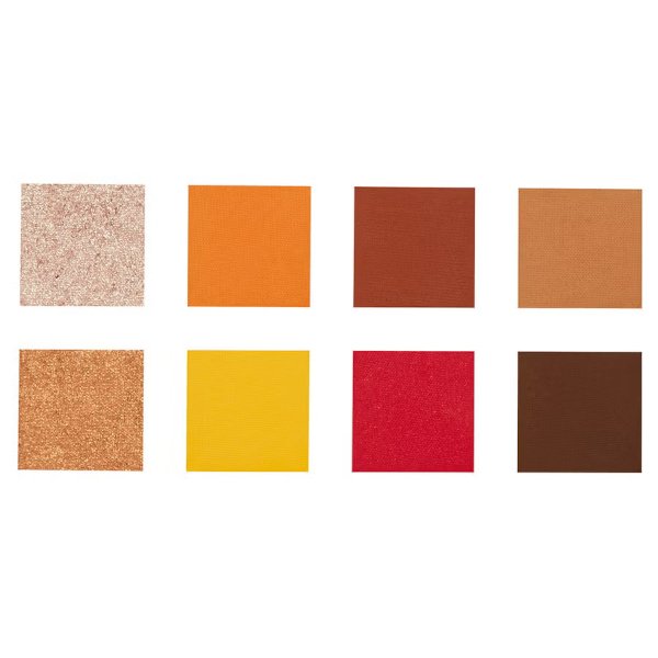 Featuring nine ultra-vibrant shades, the eyeshadows range from matte orange and cherry red to shimmering gold tones.