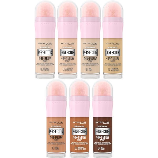 Instant Anti Age Rewind Perfector 4-In-1 Glow Makeup is Maybelline’s 1st 4-in-1 makeup for a perfected glow look that primes, conceals, highlights, and evens skin tone with light coverage. This primer, concealer, highlighter and BB cream comes in self-adjusting shades that blend into skin tone. Shade: 0.5 Fair Light Cool. For a world without animal testing. We do not test on animals. Instead, we practice effective, alternative testing methods to ensure product safety.