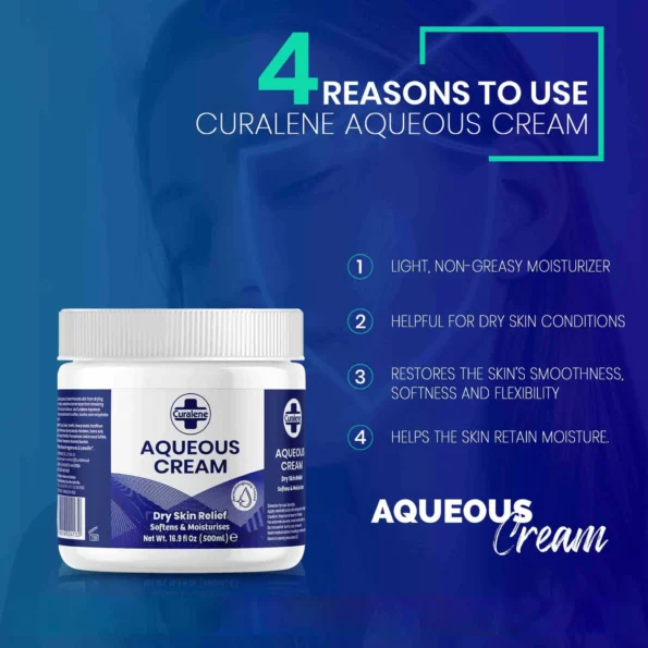 - Curalene Aqueous Cream Prevents skin from drying And creates a protective barrier layer from breaking Off skin’s natural moisture.