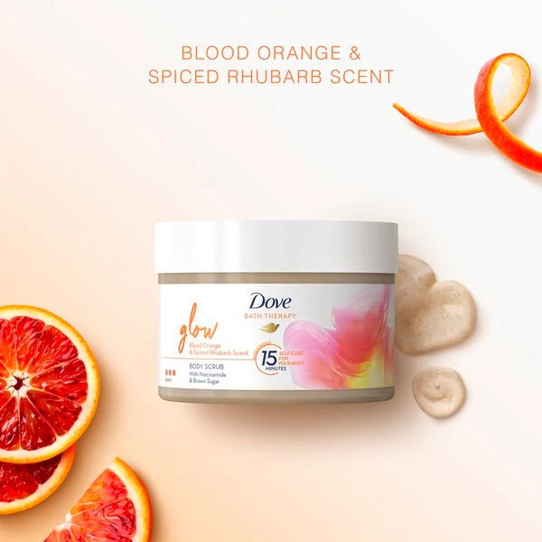 - The Dove Body Scrub Features The Delightful Scent Of Blood Orange And Spiced Rhubarb, Creating For A Luxious Experience
