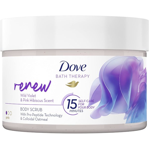 - Dove Bath Therapy Renew Body Scrub With Colloidal Oatmeal Gently Removes Dull, Dry Skin And Renews Skin’S Natural Nutrients