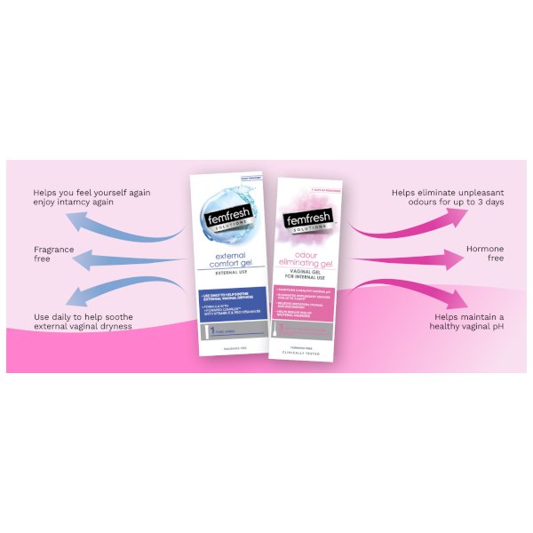 Femfresh Solutions External Comfort Gel helps sooth external vaginal dryness so you can feel like yourself again. The fragrance-free formula contains Hydrapro Complex including Vitamin E and Pro-Vitamin B5 for long lasting comfort. The gel is quick drying & mess free and can be used daily. External vaginal dryness can become a problem for some women of menopausal age (due to the depletion of the body’s natural moisture. It can also be an issue for women of any age due to other factors. Most products only help provide internal relief, but some women need products made for external vaginal dryness. How to use: Wash hands before and after application. Apply a fingertip amount to external vaginal area. Use daily or as needed for continuous comfort of dry external vaginal skin. Use as much as desired. Femfresh Solutions is a range of feminine treatments that will complement your daily hygiene range and address specific needs of your intimate area.
